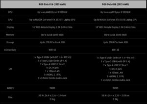 Краткие технические характеристики: ROG Strix G16 (2025 AMD) / G18 (2025 AMD)