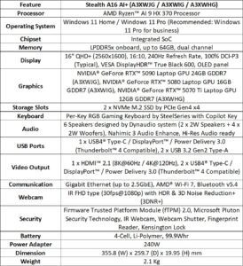 Серия Stealth, выполненная в корпусе из сплава Mg-Al, включает в себя Stealth 18, самый легкий из доступных 18-дюймовых ноутбуков. Кроме того, серия Stealth оснащена новой серией AMD Ryzen AI 300 с сертификацией Copilot+ PC, которая идеально подходит для задач с интенсивным использованием искусственного интеллекта.
